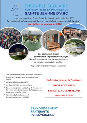 Venez nombreux découvrir l'École de la Providence le 22 novembre 2025.