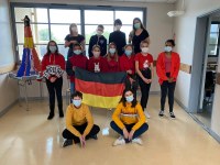 In der Mensa wurden sogar landestypische Mahlzeiten vorbereitet. Zudem trugen sowohl Schülerinnen und Schüler, wie auch Lehrerinnen und Lehrer Kleidung in den Farben der entsprechenden europäischen Länder. Sehen Sie hier die Klasse 4e in den Farben der deutschen Nationalflagge !